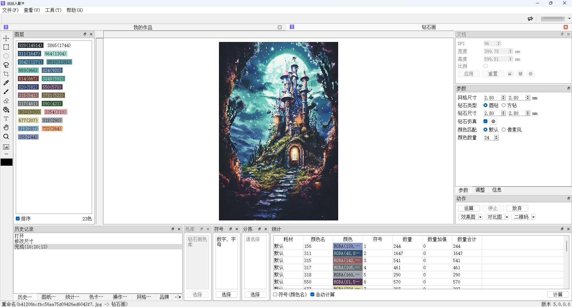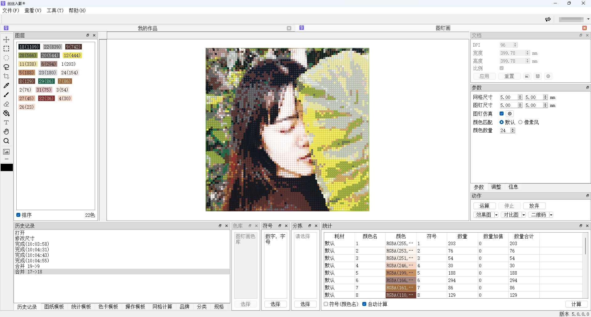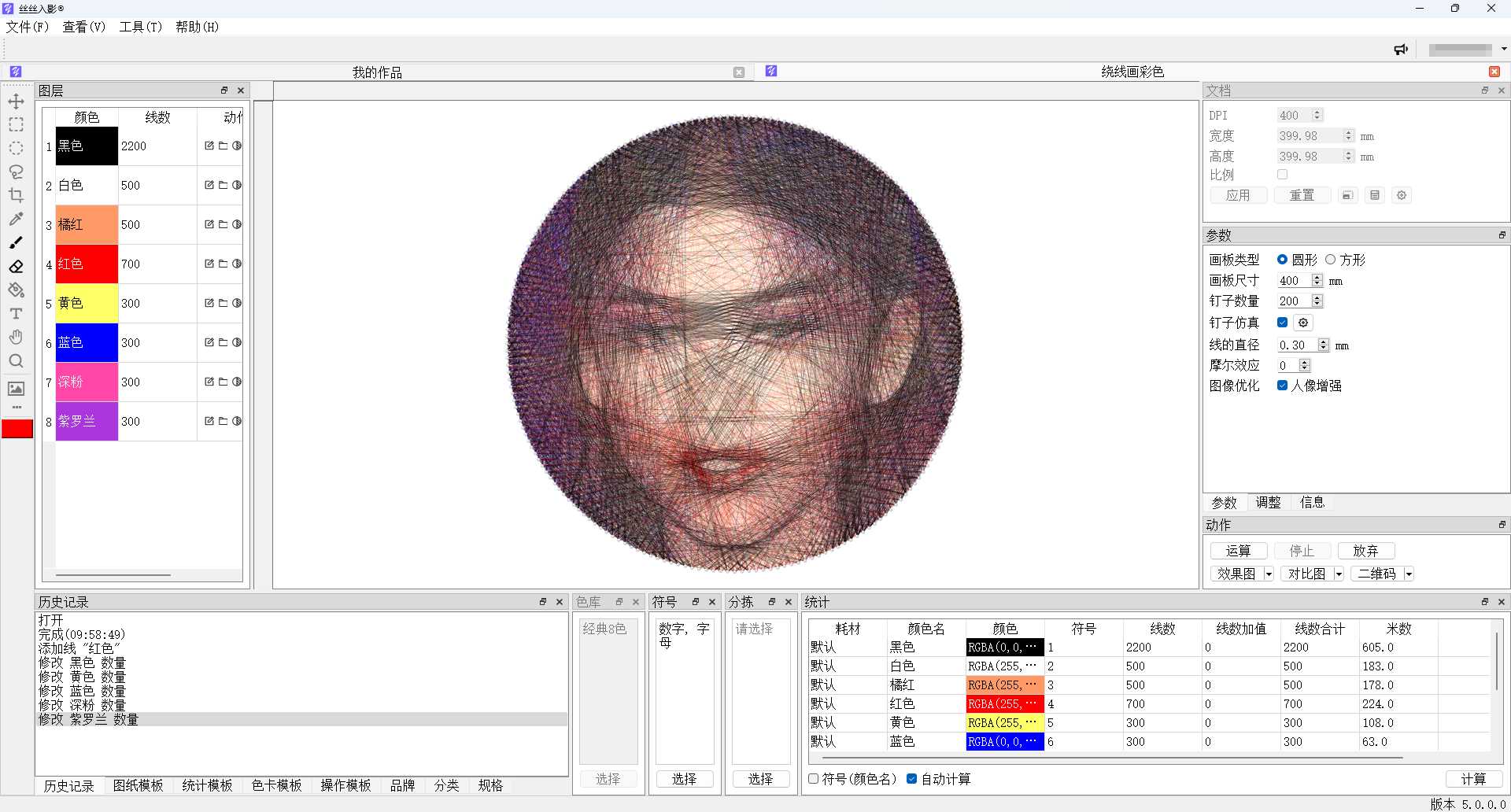 轻轻松松把JPG、PNG、BMP等文件,转换成数字油画、钻石画、图钉画、像素画、绕线画、蚊香画、螺旋画等作品。 通过智能化色彩计算,快捷、高效生成您的艺术作品!丝丝入影最新版本已发布,如您希望保留原有操作习惯,可继续下载V3版本使用。系统支持: Windows 7 SP1 64位、Windows 10 64位、Windows 11 64位。推荐配置: 内存8GB及以上、CPU Intel C...