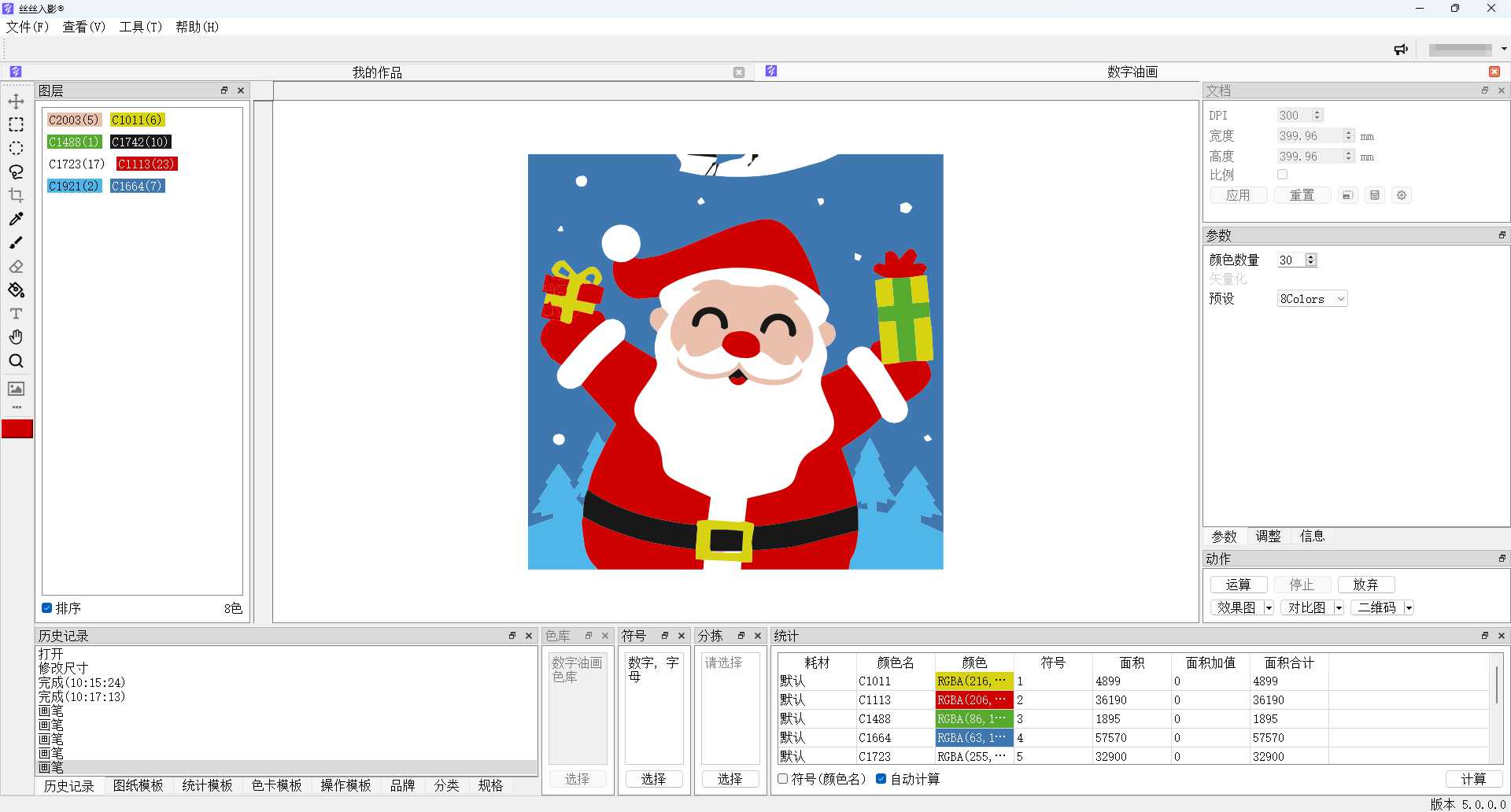 轻轻松松把JPG、PNG、BMP等文件,转换成数字油画、钻石画、图钉画、像素画、绕线画、蚊香画、螺旋画等作品。 通过智能化色彩计算,快捷、高效生成您的艺术作品!